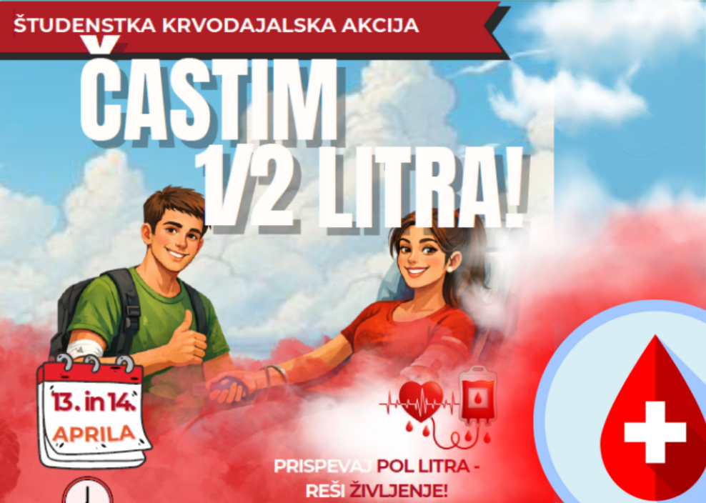 Študentska krvodajalska akcija »Častim pol litra« Območno združenje Rdečega križa Novo mesto in Društvo novomeških študentov vabita na spomladansko študentsko krvodajalsko akcijo v ponedeljek, 13. aprila 2026 in v...